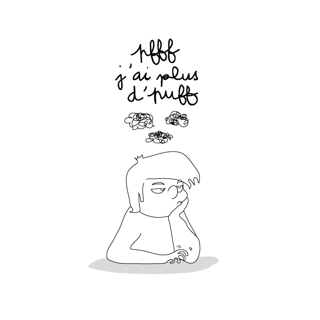 Pour le dernier numéro du magazine le Monde des Ados, j’ai traité en dessin l’addiction aux puffs :